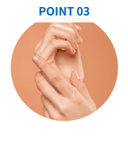 ぺぺシリーズ全ての製品に使用している主成分は、食品添加物規格を採用。高い吸水性と保持力で乾きにくく、潤いが持続します。最も扱いやすい中高粘度に仕上げることで、摩擦による乾きや粉吹きなどにも配慮。 ワンプッシュで広範囲に伸びる優れたコストパフォーマンスを発揮しますので、毎日惜しみなくたっぷりお使いいただけます。